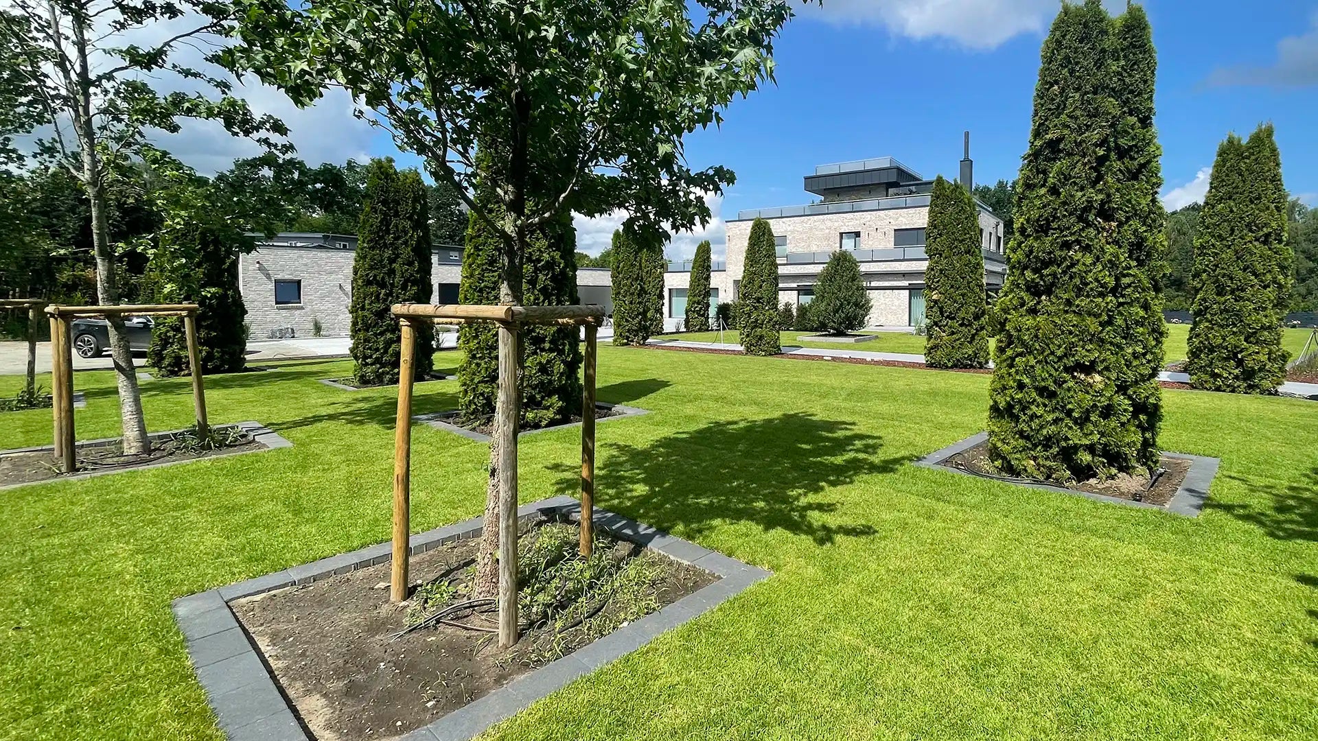 Indem Sie in hochwertigen Rollrasen und dessen Pflege investieren, investieren Sie gleichzeitig in die Attraktivität und den Verkaufserfolg Ihrer Musterhäuser.